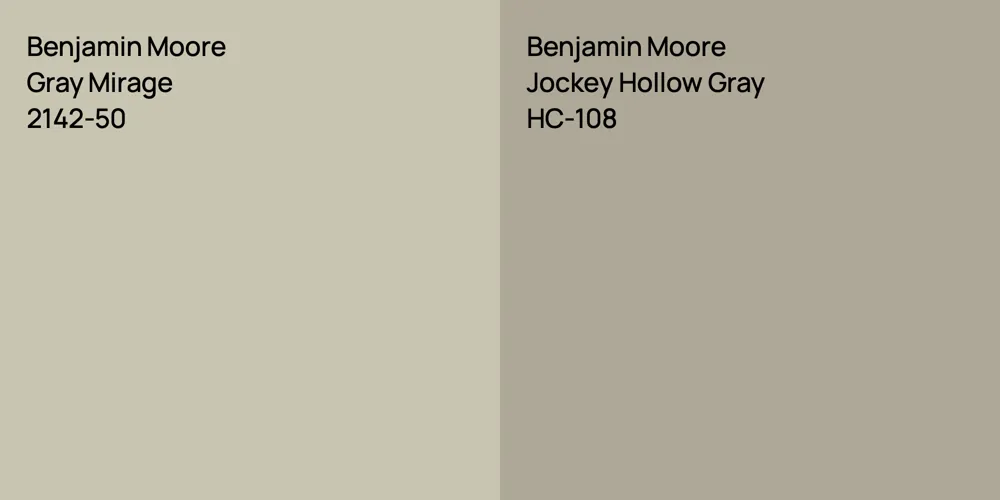 Benjamin Moore 2142-50 and HC-108 differ significantly in saturation. Benjamin Moore 2142-50 is more saturated.