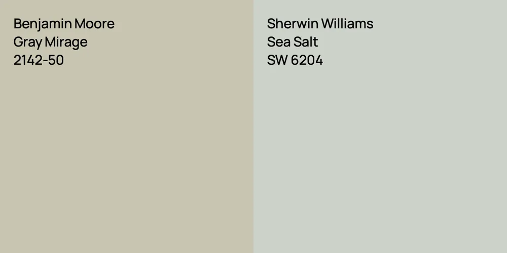 Despite their differences, both colors share a similar value, with Benjamin Moore 2142-50 is being darker.