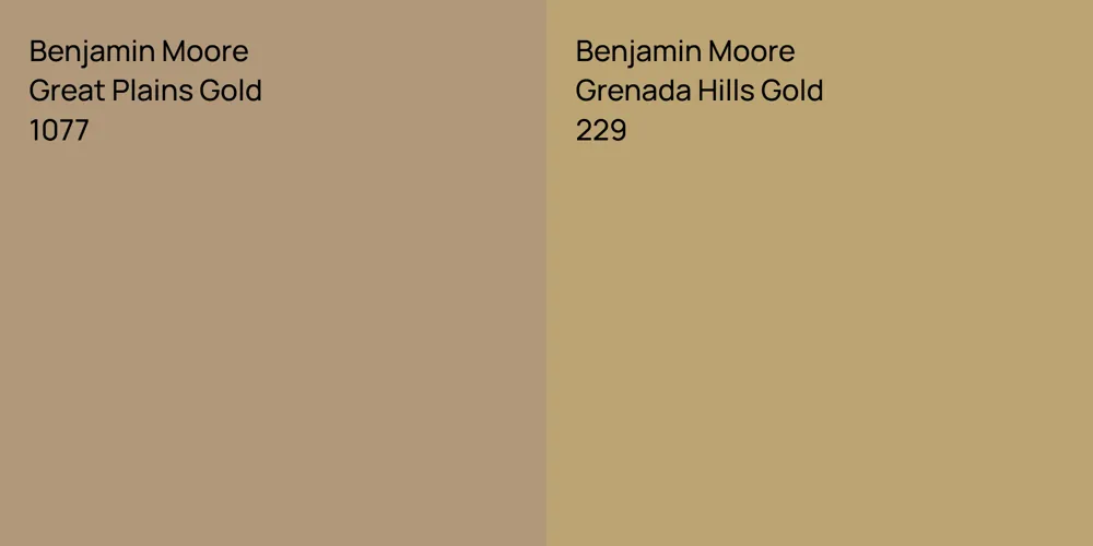Despite their differences, both colors share a similar value, with Benjamin Moore 1077 is being darker.
