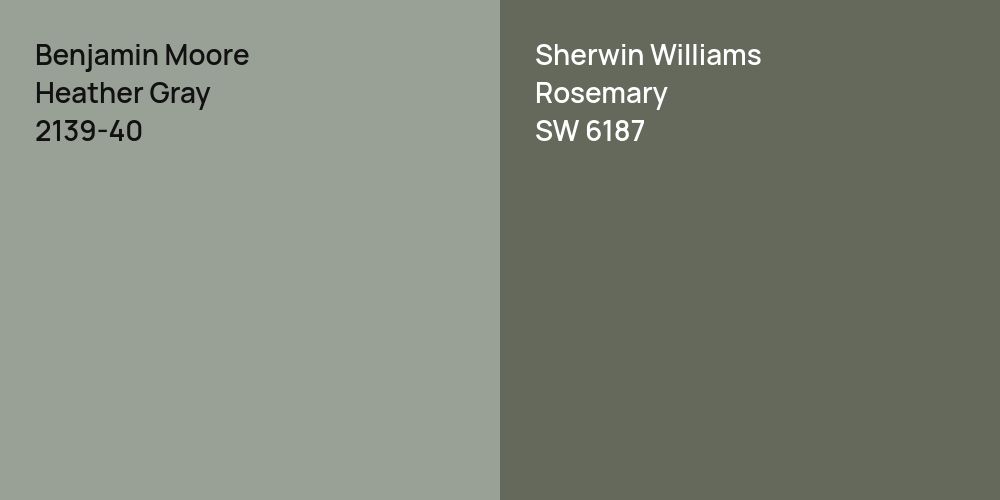 We understand how important it is to remember the details. The colors, each with their own unique beauty and value, are truly special. It's important to note that the colors have different hues. Benjamin Moore 2139-40 leans towards hues, while Sherwin Williams SW 6187 is .