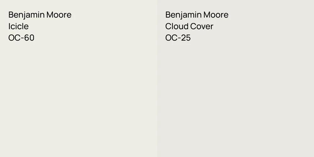 Despite their differences, both colors share a similar value, Benjamin Moore OC-60 radiating a lighter essence compared to OC-25.
