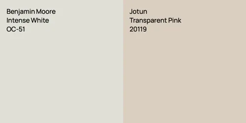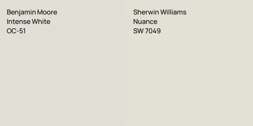 Despite their differences, both colors share a similar value, Benjamin Moore OC-51 radiating a lighter essence compared to SW 7029.
