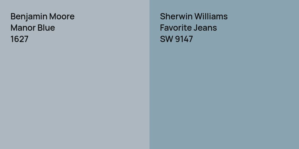 Despite their differences, both colors share a similar value, Benjamin Moore 1627 radiating a lighter essence compared to SW 9147.