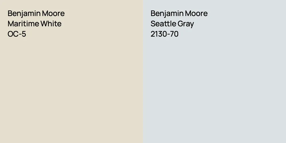 Despite their differences, both colors share a similar value, with Benjamin Moore OC-5 is being darker.