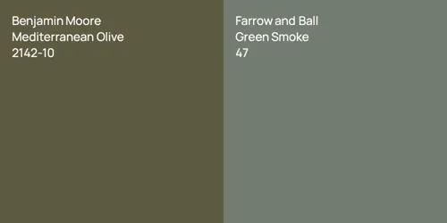 Despite their differences, both colors share a similar value, with Benjamin Moore 2142-10 is being darker.