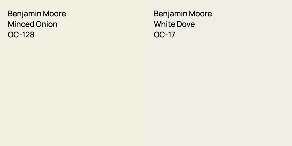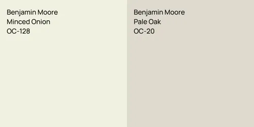 Despite their differences, both colors share a similar value, with Benjamin Moore OC-128 is being darker.