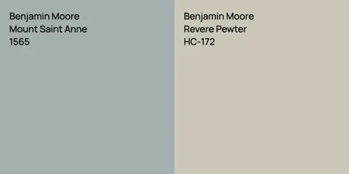Despite their differences, both colors share a similar value, Benjamin Moore 1565 radiating a lighter essence compared to 1559.