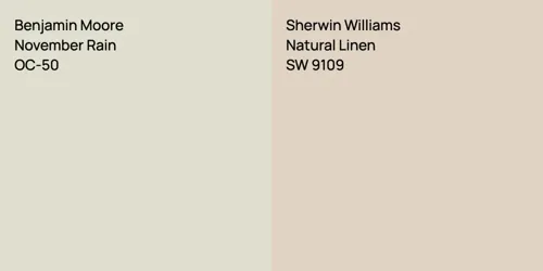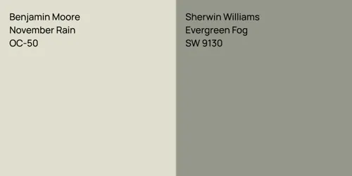 The colors, each unique in their hue and saturation, embody their own individual beauty and value. It's important to note that the colors have different hues. Benjamin Moore OC-50 leans towards hues, while Benjamin Moore AF-465 is .