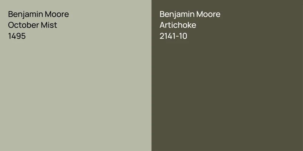 They differ in their values, Benjamin Moore 1495 radiating a lighter essence compared to 2141-10.