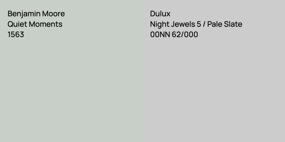 Benjamin Moore 1563 and 00NN 62/000 differ significantly in saturation. Benjamin Moore 1563 is more saturated.