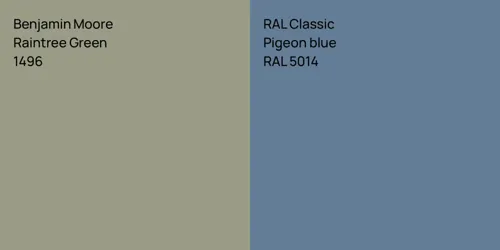 Despite their differences, both colors share a similar value, with Benjamin Moore 1496 is being darker.