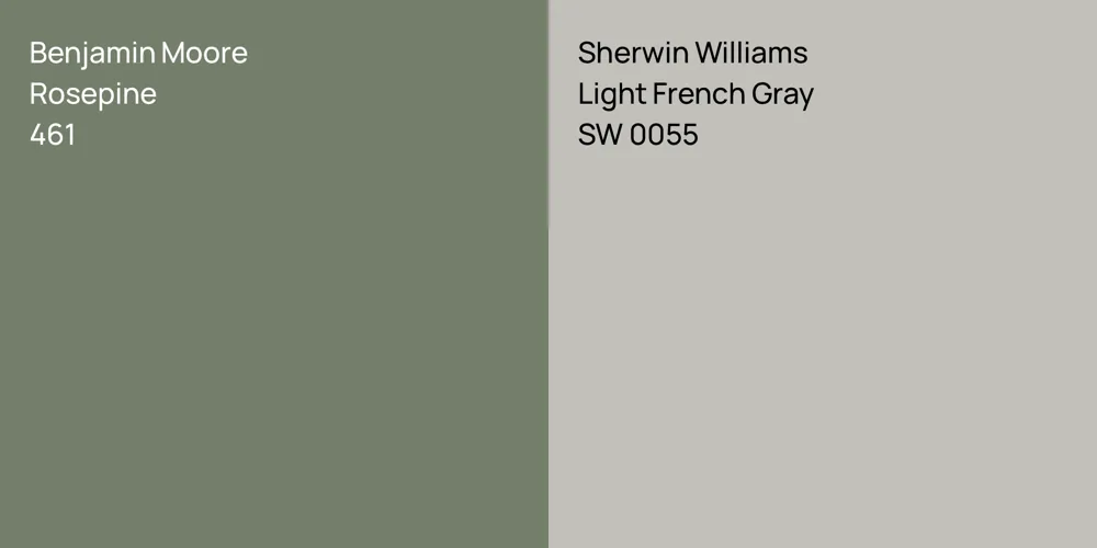 The colors, each unique in their hue and saturation, embody their own individual beauty and value. It's important to note that the colors have different hues. Benjamin Moore 461 leans towards hues, while Sherwin Williams SW 0055 is .