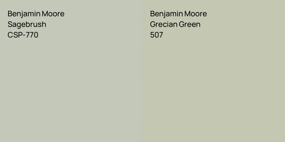 Despite their differences, both colors share a similar value, Benjamin Moore CSP-770 radiating a lighter essence compared to 507.