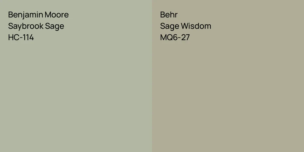 Despite their differences, both colors share a similar value, Benjamin Moore HC-114 radiating a lighter essence compared to MQ6-27.