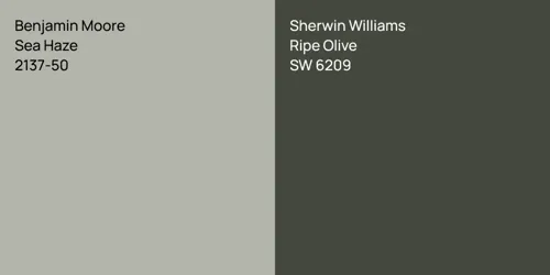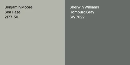 Despite their differences, both colors share a similar value, Benjamin Moore 2137-50 radiating a lighter essence compared to 466.