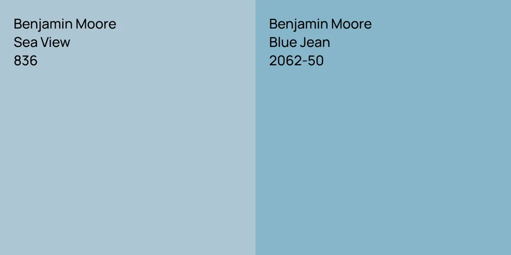 Despite their differences, both colors share a similar value, Benjamin Moore 836 radiating a lighter essence compared to 2062-50.