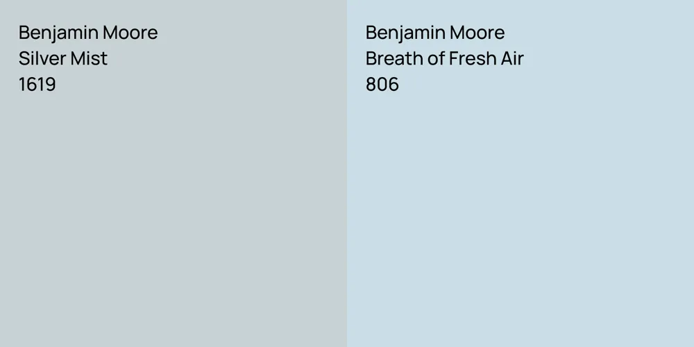 Despite their differences, both colors share a similar value, with Benjamin Moore 1619 is being darker.