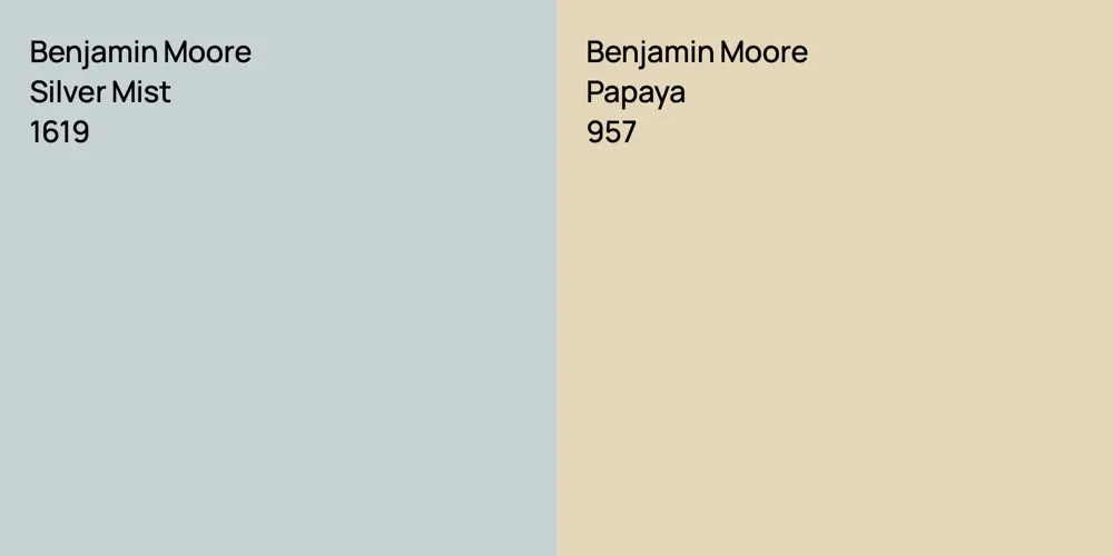 The colors, each unique in their hue and saturation, embody their own individual beauty and value. It's important to note that the colors have different hues. Benjamin Moore 1619 leans towards hues, while Benjamin Moore 957 is .