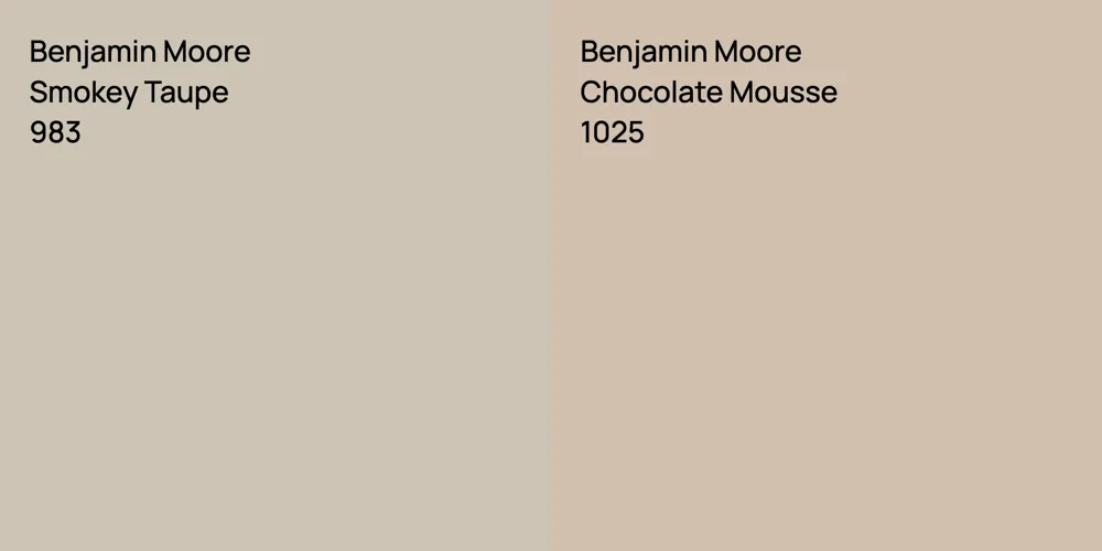 Despite their differences, both colors share a similar value, Benjamin Moore 983 radiating a lighter essence compared to 1025.