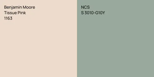Despite their differences, both colors share a similar value, Benjamin Moore 1163 radiating a lighter essence compared to 1009.