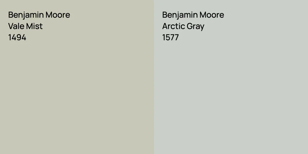 Despite their differences, both colors share a similar value, with Benjamin Moore 1494 is being darker.