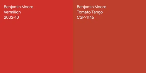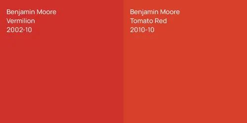 Despite their differences, both colors share a similar value, with Benjamin Moore 2002-10 is being darker.