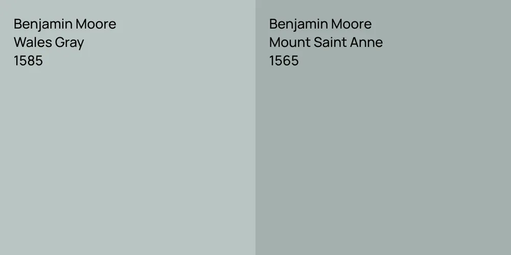 Despite their differences, both colors share a similar value, Benjamin Moore 1585 radiating a lighter essence compared to 1565.