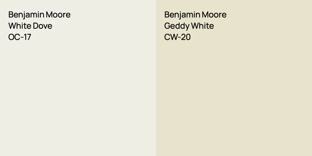 Despite their differences, both colors share a similar value, Benjamin Moore OC-17 radiating a lighter essence compared to CW-20.