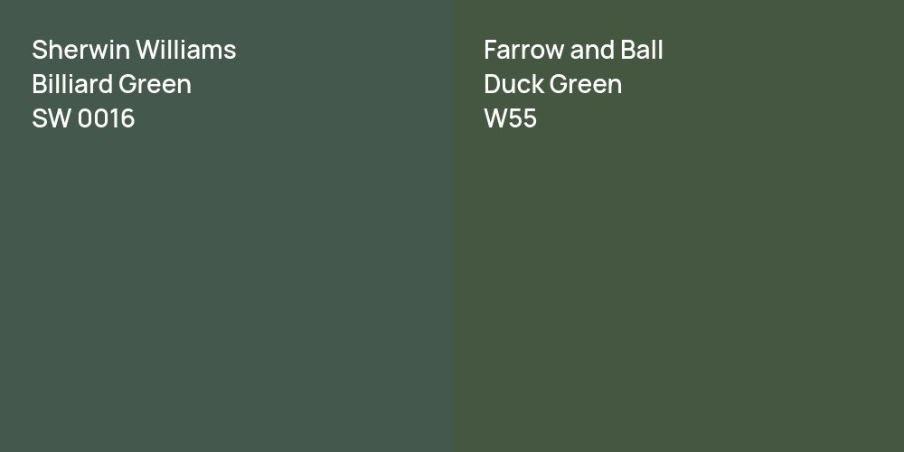 The colors, each unique in their hue and saturation, embody their own individual beauty and value. It's important to note that the colors have different hues. Sherwin Williams SW 0016 leans towards hues, while Farrow and Ball W55 is .