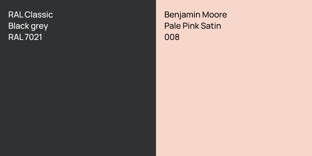 We understand how important it is to remember the details. The colors, each with their own unique beauty and value, are truly special. It's important to note that the colors have different hues. RAL Classic RAL 7021 leans towards hues, while Benjamin Moore 008 is .