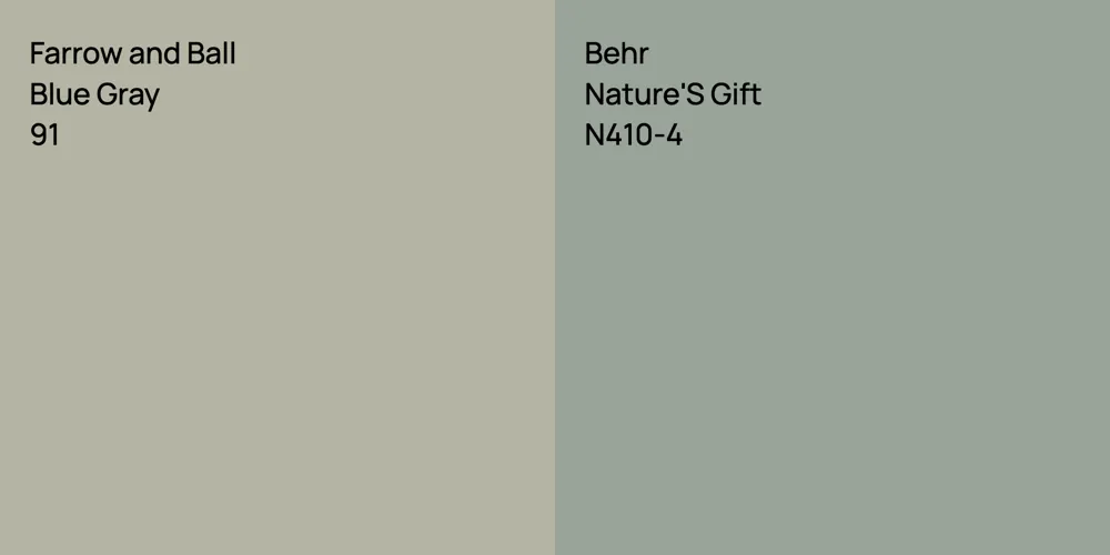 Despite their differences, both colors share a similar value, Farrow and Ball 91 radiating a lighter essence compared to N410-4.