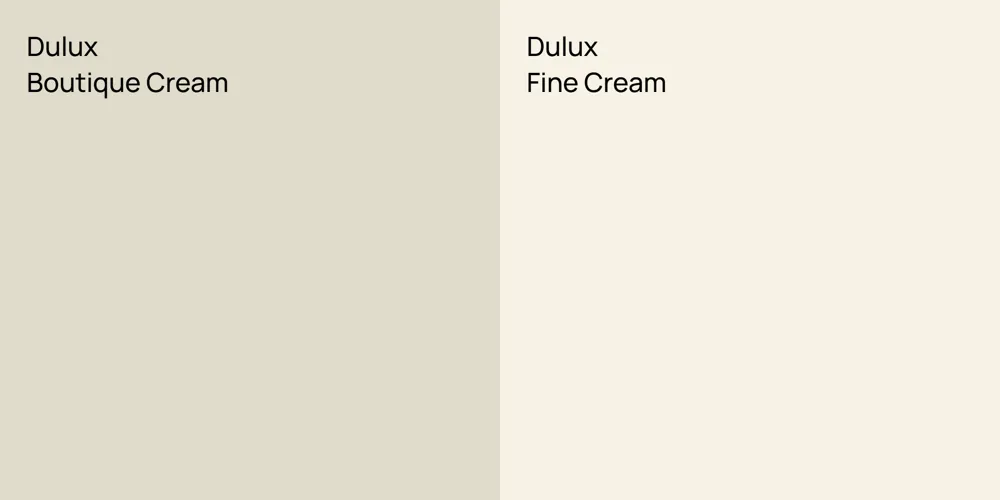 Despite their differences, both colors share a similar value, with Dulux Boutique Cream is being darker.