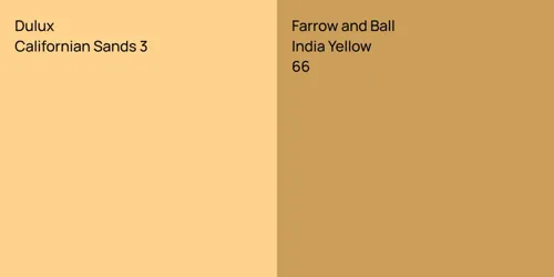 Dulux Californian Sands 3 and Sundrenched Saffron 4 differ significantly in saturation. Dulux Californian Sands 3 is more saturated.