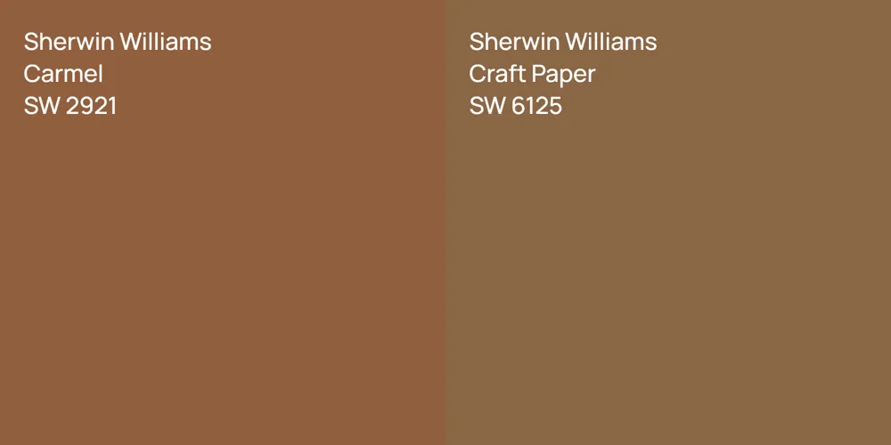 Sherwin Williams SW 2921 and SW 6125 differ significantly in saturation. Sherwin Williams SW 2921 is more saturated.