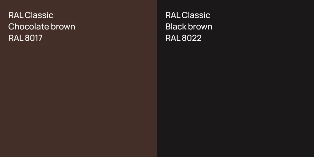 They differ in their values, RAL Classic RAL 8017 radiating a lighter essence compared to RAL 8022.