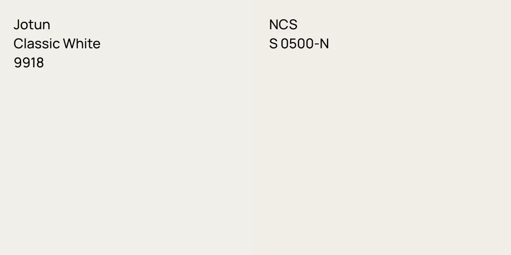 The colors, each unique in their hue and saturation, embody their own individual beauty and value. It's important to note that the colors have different hues. Jotun 9918 leans towards hues, while NCS S 0500-N is .