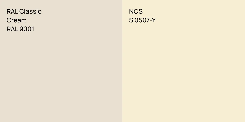 Despite their differences, both colors share a similar value, with RAL Classic RAL 9001 is being darker.