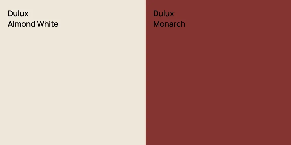 They differ in their values, Dulux Almond White radiating a lighter essence compared to Monarch.