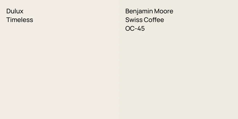 Despite their differences, both colors share a similar value, Dulux Timeless radiating a lighter essence compared to OC-45.