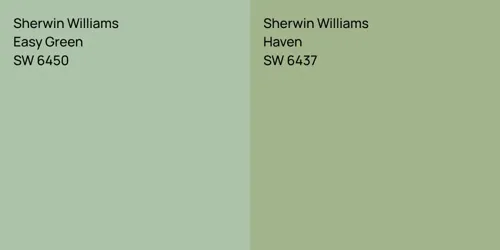 The colors, each unique in their hue and saturation, embody their own individual beauty and value. It's important to note that the colors have different hues. Sherwin Williams SW 6450 leans towards hues, while Benjamin Moore 1603 is .
