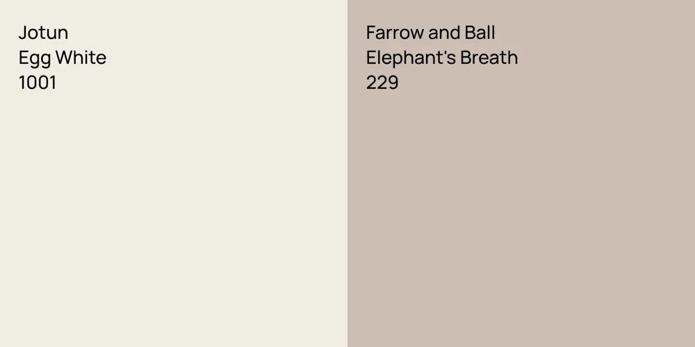 The colors, each unique in their hue and saturation, embody their own individual beauty and value. It's important to note that the colors have different hues. Jotun 1001 leans towards hues, while Farrow and Ball 229 is .