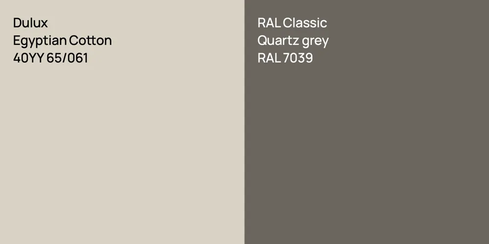 Dulux 40YY 65/061 and RAL 7039 differ significantly in saturation. Dulux 40YY 65/061 is more saturated.