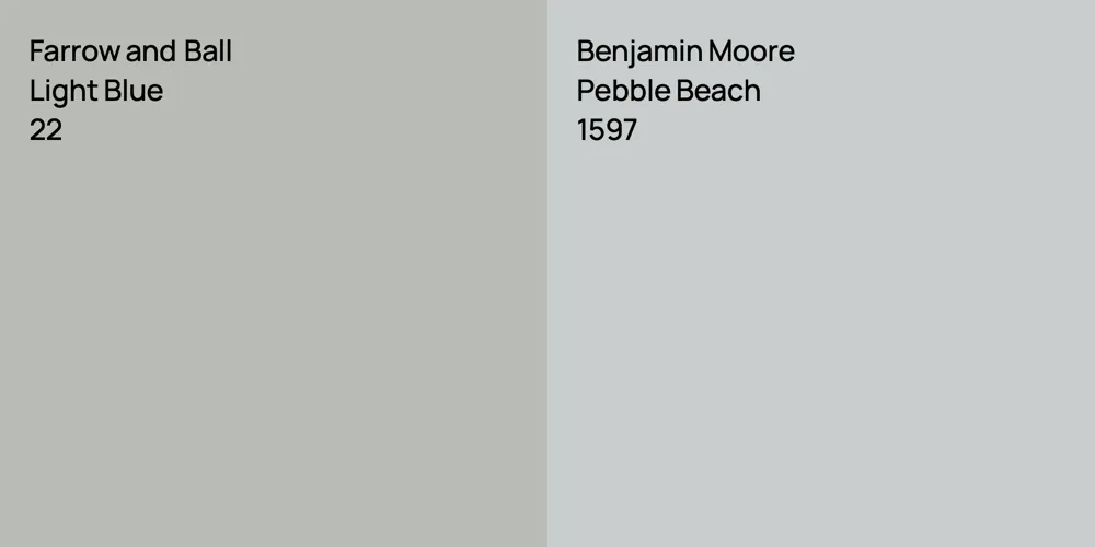 We understand how important it is to remember the details. The colors, each with their own unique beauty and value, are truly special. It's important to note that the colors have different hues. Farrow and Ball 22 leans towards hues, while Benjamin Moore 1597 is .