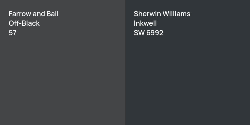Despite their differences, both colors share a similar value, Farrow and Ball 57 radiating a lighter essence compared to SW 6992.