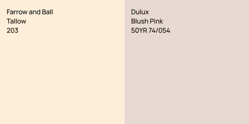 Farrow and Ball 203 and 20YY 83/100 differ significantly in saturation. Farrow and Ball 203 is more saturated.