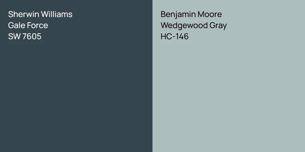 Sherwin Williams SW 7605 and HC-146 differ significantly in saturation. Sherwin Williams SW 7605 is more saturated.