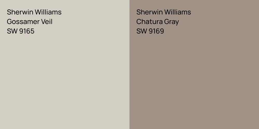 We understand how important it is to remember the details. The colors, each with their own unique beauty and value, are truly special. It's important to note that the colors have different hues. Sherwin Williams SW 9165 leans towards hues, while Sherwin Williams SW 9169 is .