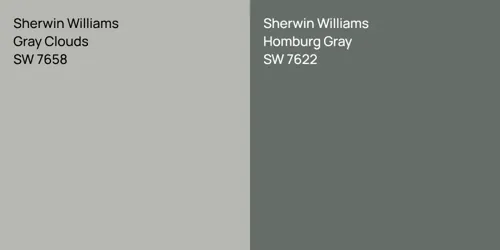 The colors, each unique in their hue and saturation, embody their own individual beauty and value. It's important to note that the colors have different hues. Sherwin Williams SW 7658 leans towards hues, while Benjamin Moore HC-169 is .