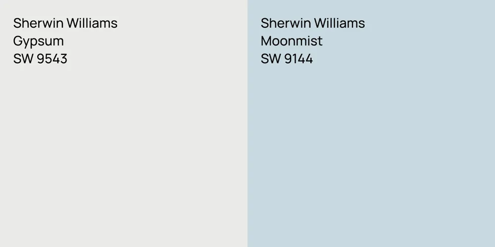 Despite their differences, both colors share a similar value, Sherwin Williams SW 9543 radiating a lighter essence compared to SW 9144.