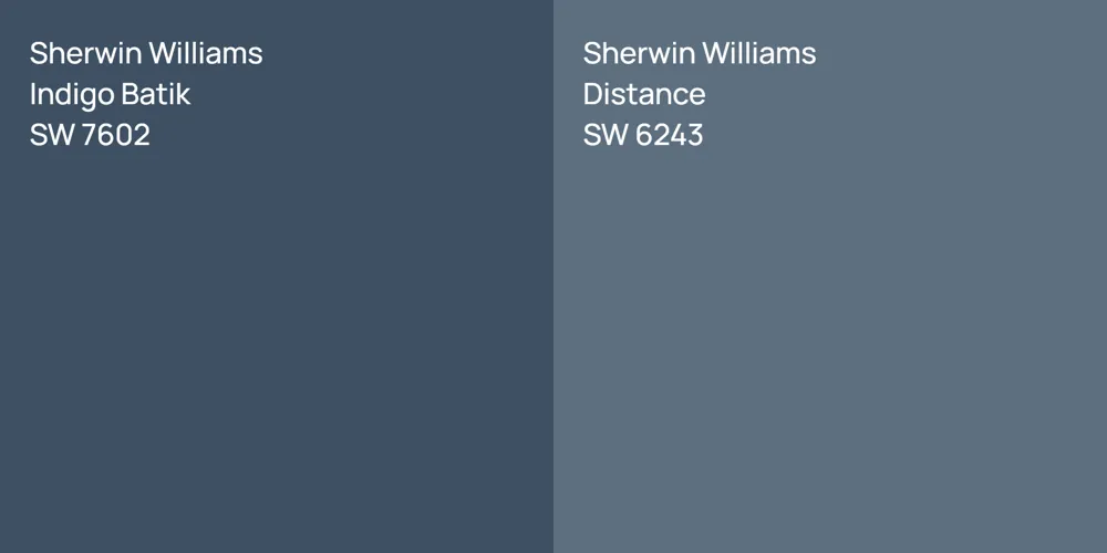 Sherwin Williams SW 7602 and SW 6243 differ significantly in saturation. Sherwin Williams SW 7602 is more saturated.